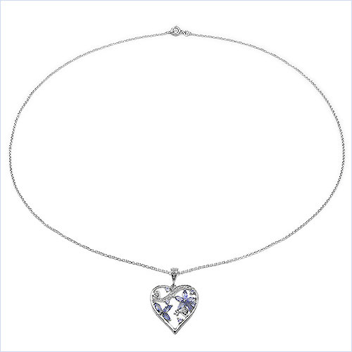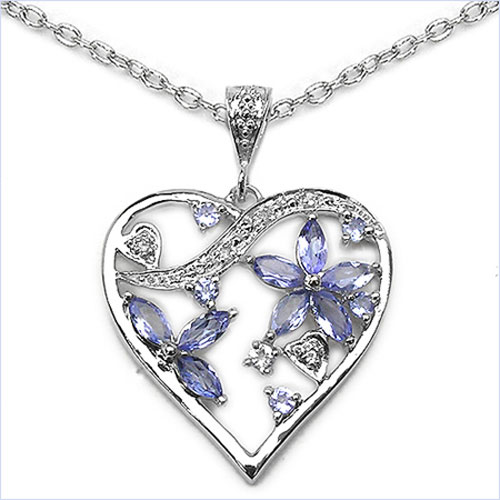 Collier/Halskette mit edlem Herz-Anhänger in Tansaniten / Weißen Zirkonias - 925 Sterling Silber - 1,35 Karat