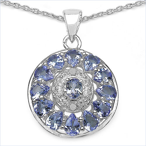 Collier/Kette mit Tansanit Anhänger-925 Silber-Rhodiniert