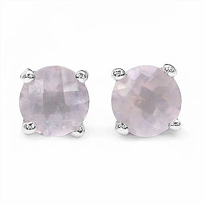 Runde Rosenquarz Ohrringe/Ohrstecker im Prinzessschliff - 925 Sterling Silber- Rhodiniert 1,20 Karat