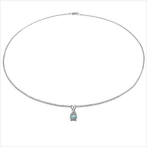 Collier/Kette mit ovalen und runden Blautopas als Anhänger-925 Sterling Silber-Rhodiniert-0,66 Karat