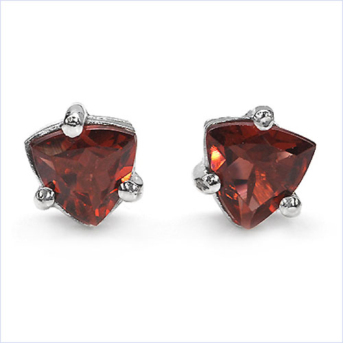 Granat Ohrringe/Ohrstecker 925 Sterling Silber - Rhodiniert - in 1,00 Karat