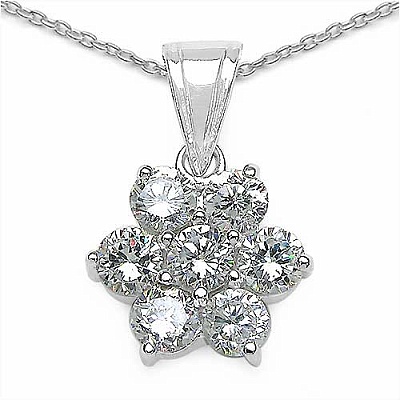Collier/Halskette 925-Sterling Silber mit Blume/Blüte-Anhänger mit 7 Weißen Zirkonia - 4,20 Karat