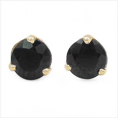 Ohrstecker schwarzer Saphir (0,70 Karat) im Rundschliff - Gelbgold 10 Karat (416er)
