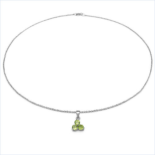 Collier/Halskette mit Peridot - Blume - Anhänger-925 Sterling Silber-Rhodiniert 0,75 Karat
