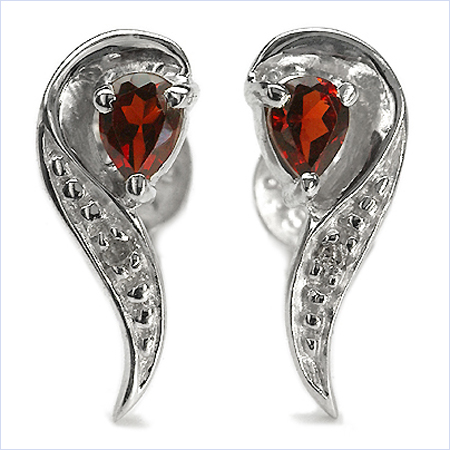 Diamant Ohrringe-925 Sterling Silber-Rhodiniert-mit natürlichen Granatstein in Tropfenform-0,42 Karat