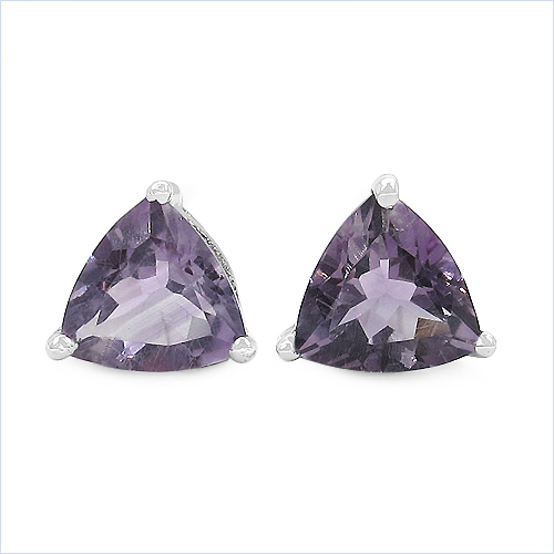 Ohrringe/Ohrstecker Amethyst (Trillion) - 925 Sterling Silber - Rhodiniert - in 2,00 Karat