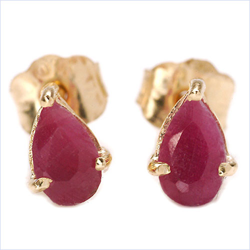 Ohrringe/Ohrstecker Rubin-Tropfen (0,50 Karat) im Tropfenschliff - Gelbgold 10 Karat (416er)