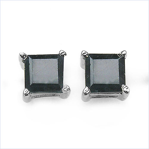 Ohrringe / Ohrstecker Black Saphir 925 Sterling Silber - Rhodiniert 1.00 Karat