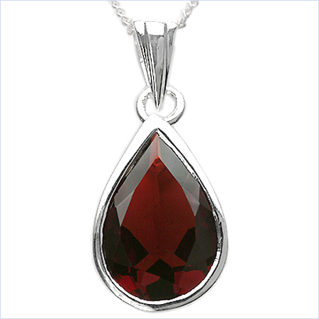 Collier/ Halskette mit großem Granat - Tropfen - Anhänger 5,50 Karat - 925 Sterling Silber-Rhodiniert