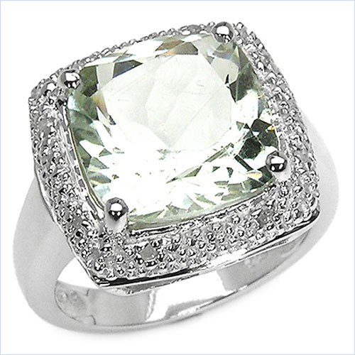 Spektakulärer Diamant / Grüner Amethyst (Briolite) - Ring - 925 Sterling Silber-Rhodiniert in 6,17 Karat