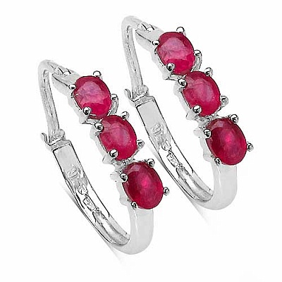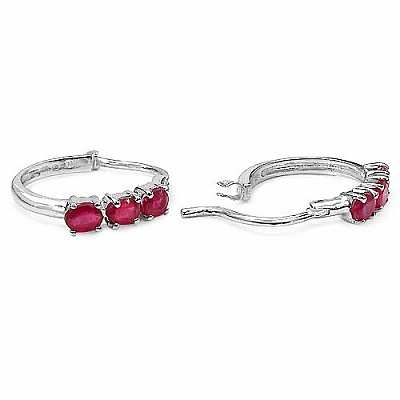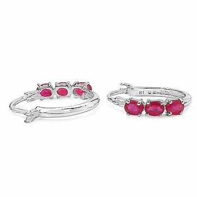 Ohrringe / Creolen echte Rubine 925 Sterling Silber - Rhodiniert 1,56 Karat