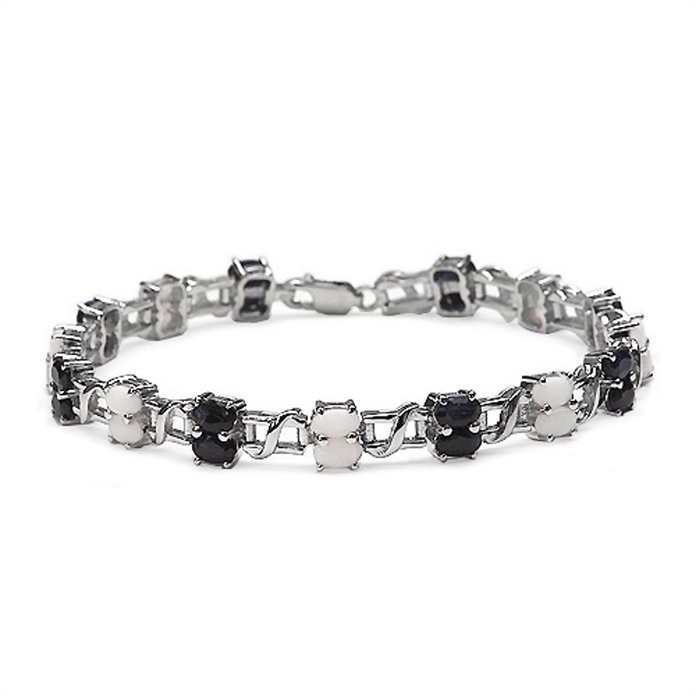 Bezauberndes, edles Black Saphir-Opal-Armband in 7,46 Karat (30 Edelsteine) - 925 Sterling Silber-Rhodiniert -