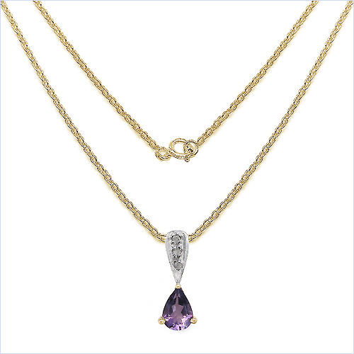 Collier/Kette mit Amethyst/Diamant - Anhänger 0,77 Karat-925 Sterling Silber - Vergoldet mit Gelbgold 10 Karat