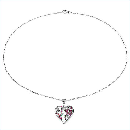 Collier/Halskette mit edlem Herz-Anhänger in Rubin / Weißen Zirkonias - 925 Sterling Silber - 1,95 Karat -
