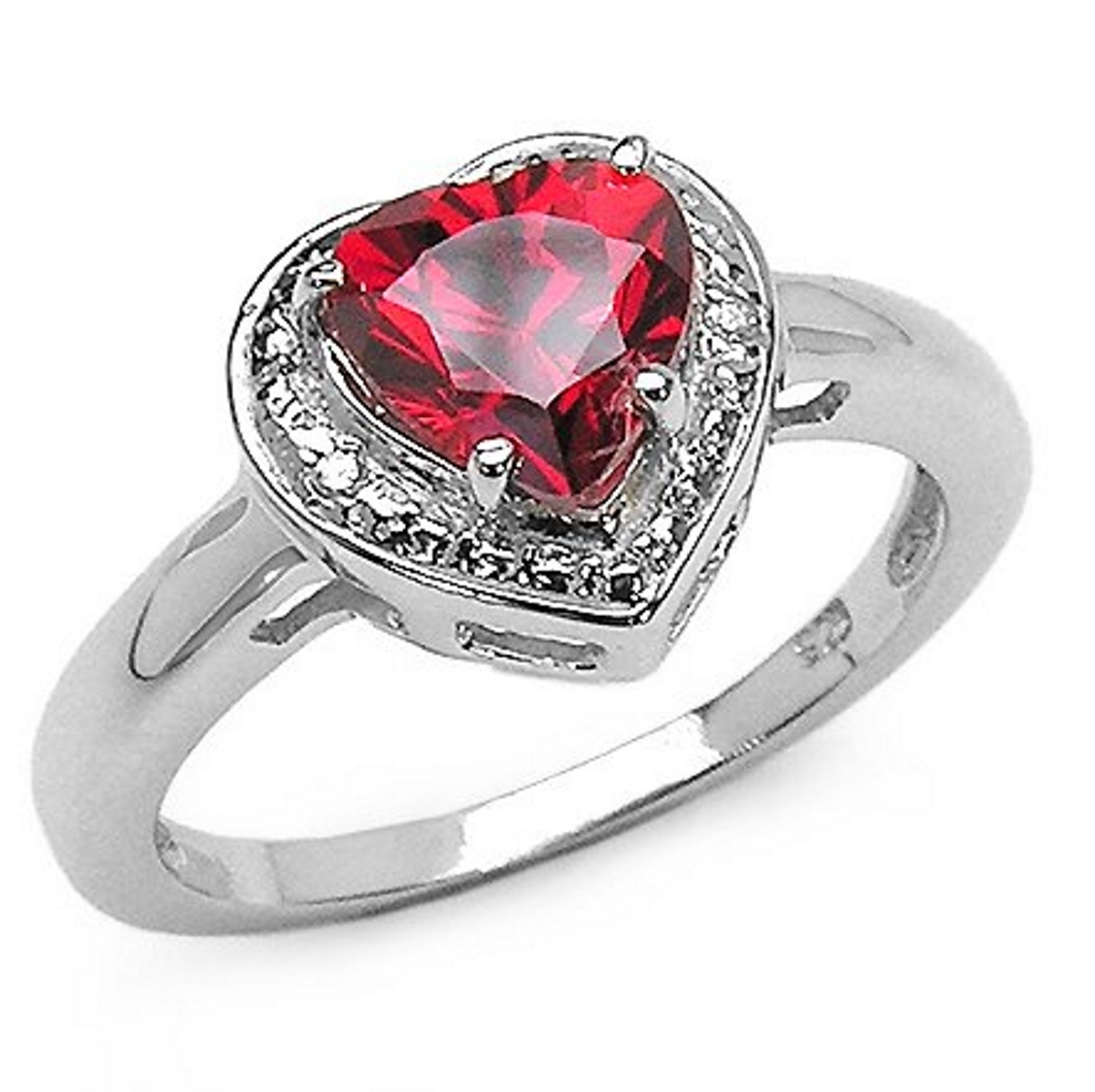 Strahlender Granat/weißer Zirkonia - Herz - Ring - 925 Sterling Silber - Rhodiniert in 2,17 Karat