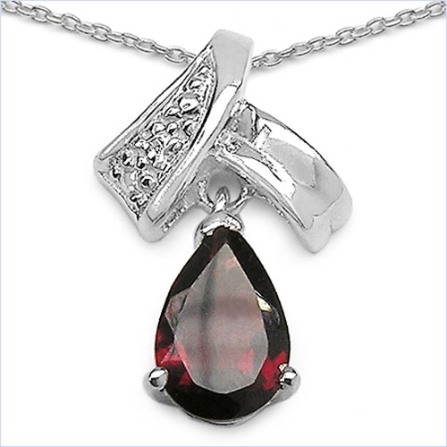 Collier/Halskette mit Granat - Tropfen - Anhänger - 925 Sterling Silber-Rhodiniert in 1,30 Karat