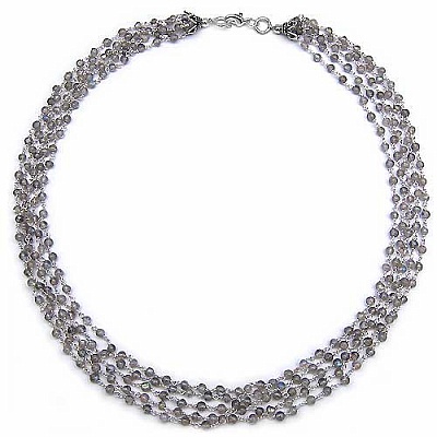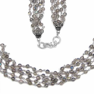 In diesem edlen Collier aus Labradorit wurden ca. 330 echte Edelsteine in 5 Strängen verarbeitet.