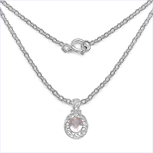 In diesem aussergewöhnlichen, auffälligen Rosenquarz - Collier mit Anhänger in Medaillionform wurde ein 12 x 10 mm großer Rosenquarz im facettierten Schliff verarbeitet. Dieser Edelstein wurde eingefasst in feinstem 925 Sterling Silber.