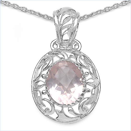 Edler Rosenquarz Anhänger / Medaillion - 925 Sterling Silber-Rhodiniert in 4,15 Karat