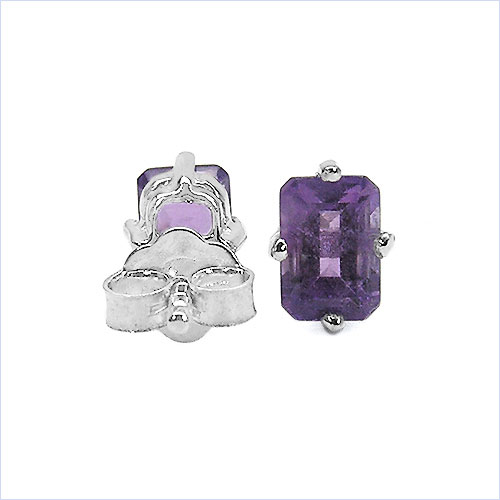 Ohrringe/Ohrstecker rechteckige Amethyste 925 Sterling Silber Rhod.-1,70 Karat