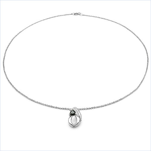 Collier/Halskette mit schwarzem Saphir - Anhänger - 925 Sterling Silber-Rhodiniert 0,50 Karat