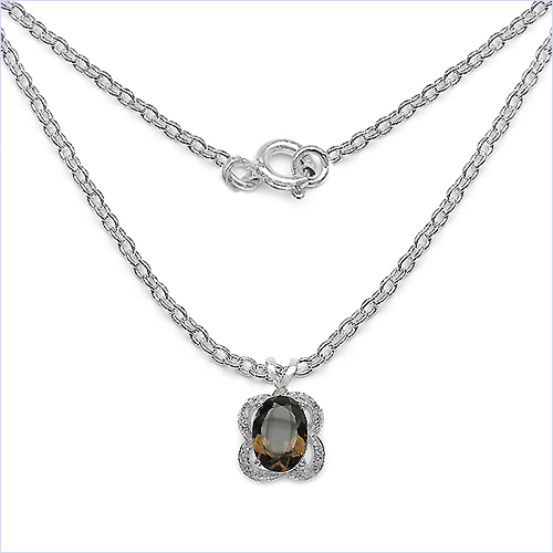 Collier/Kette mit Rauchquarz/Smoky-Topas / Weißtopas - Anhänger - 925 Sterling Silber - Rhodiniert - 5,57 Karat