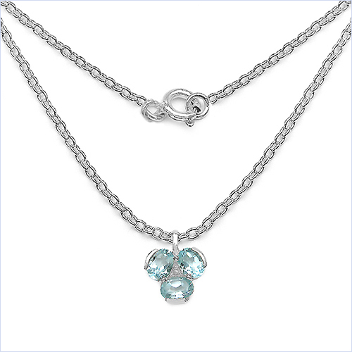 Silber Collier/Kette mit 3 Blautopas/Weißtopas Anhänger-925 Sterling Silber-Rhodiniert - 4,82 Karat