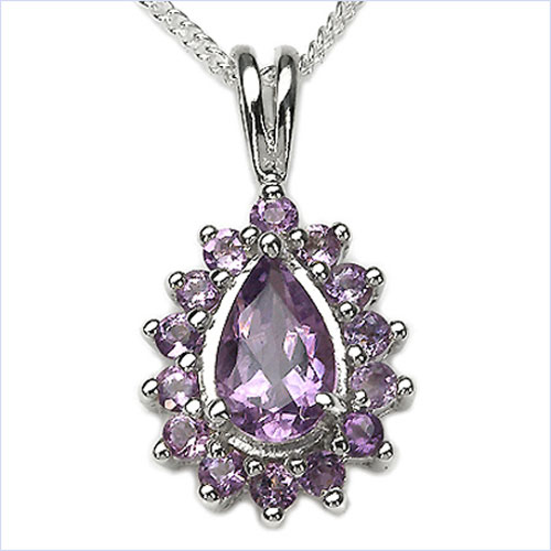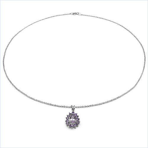 Collier/Halskette mit Amethyst - Anhänger (15 Edelsteine) - 925 Sterling Silber-