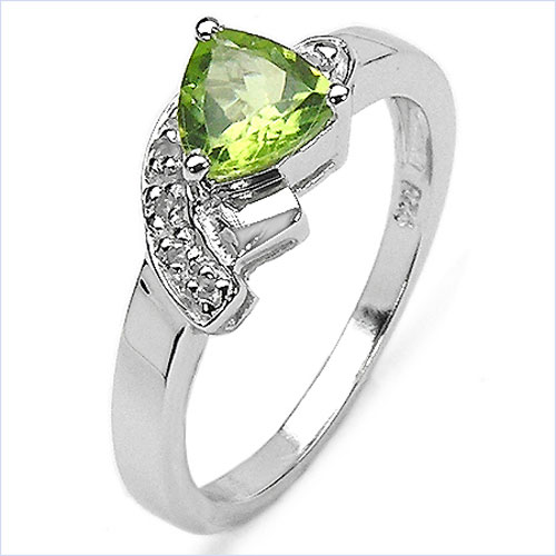 Edler Diamant / Peridot - Ring - 925 Sterling Silber-Rhodiniert in 0,75 Karat