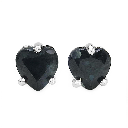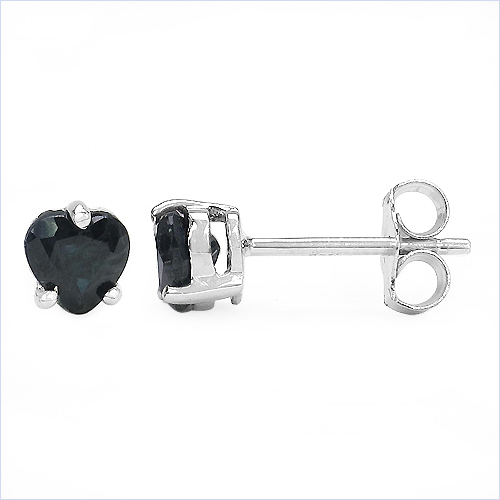 Ohrstecker Herz 925 Sterling Silber - Rhodiniert - mit Schwarzen Saphiren 1,00 Karat