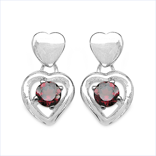 In diesen aussergewöhnlichen Ohrsteckern ist als Stein je ein Granat im Herzenohrring perfekt eingefasst.