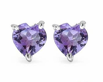 In diesen aussergewöhnlichen Ohrsteckern ist als Stein je ein Amethystim Herzschliff perfekt eingefasst.