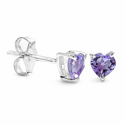 Ohrstecker Herz 925 Sterling Silber - Rhodiniert - mit Amethyst 0,50 Karat