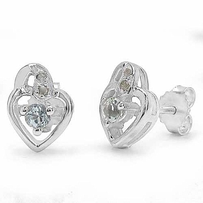 Ohrringe/Ohrstecker Herz 925 Sterling Silber - Rhodiniert - mit Diamanten und Blautopas -0,22 Karat