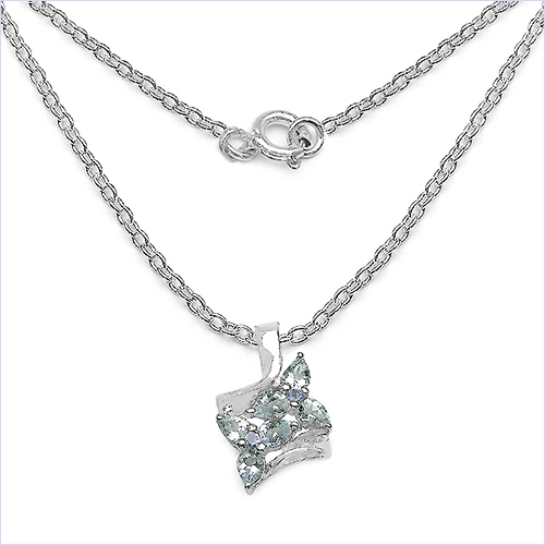 Collier/ Halskette mit Aquamarin - Anhänger - 925 Sterling Silber-Rhodiniert 1,14 Karat