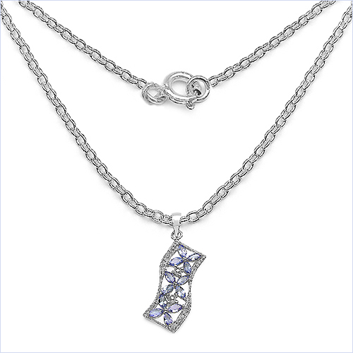 Collier/Halskette mit Tansanit - Blumen - Anhänger - 925 Sterling Silber - Rhodiniert
