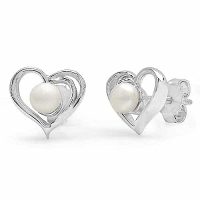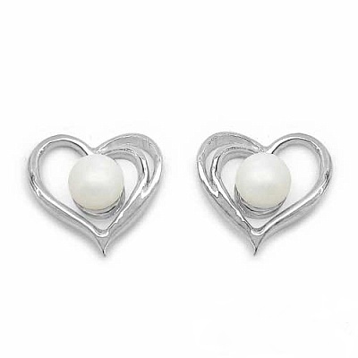 Ohrringe / Ohrstecker - Herz mit Perle - 925 Sterling Silber - Rhodiniert - 0,70 Karat