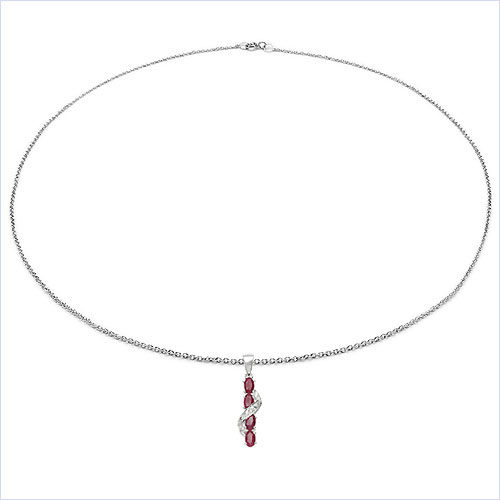 Silber Collier/Kette mit 4 Rubinen und 1 Weißen Diamant - Anhänger-925 Sterling Silber-Rhodiniert in 1,41 Karat
