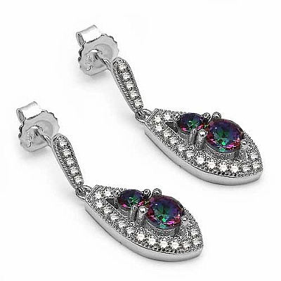 In der Mitte der Ohrringe befinden sich 2 Mystik-Topas und um sie herum jeweils 29 weiße Zirkonias pro Ohrring.