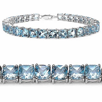 Bezauberndes Edles Blautopas Armband Silber-Rhodiniert 21,45 Karat-33 Edelsteine