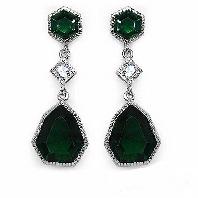 In diesen auffälligen, großen funkelnden Ohrringen mit Steckverschlüssen wurden smaragdgrüne und weiße Zirkonias