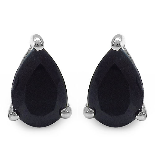 Ohrringe/Ohrstecker Nachtblaue/Schwarze Saphir - Tropfen - 925 Sterling Silber - Rhodiniert 0,90 Karat