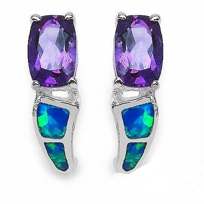 Designer-Ohrringe/Ohrstecker Amethyst Silber Rhodiniert-0,90 Karat