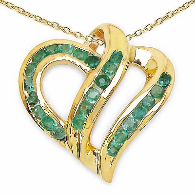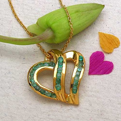925 Sterling Silber- Vergoldet mit 10 Karat, mit bezaubernden Herz mit 25 echten Smaragden besetzt.