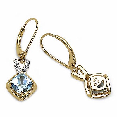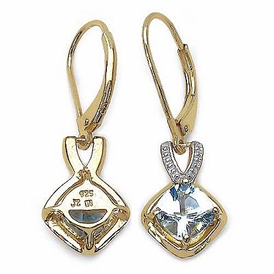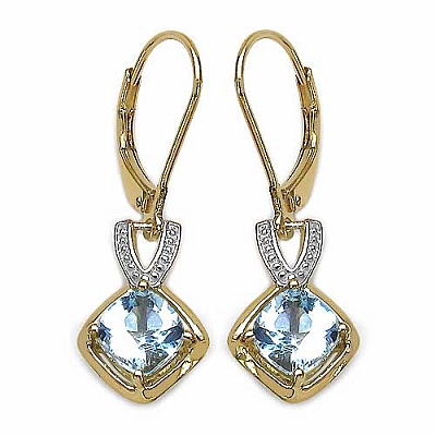 Ohrringe/Ohrhaken mit Blautopas-2,40 Karat Silber-vergoldet 14 Karat Gelbgold