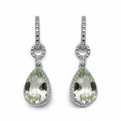 Elegante Ohrringe/Ohrstecker - mit Diamant/Grüner Amethyst 5,12 Karat-925 Sterling Silber - Rhodiniert