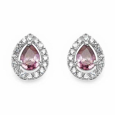 In diesen eleganten Ohrsteckern wurde je ein tropfenförmiger rosa und 11 weiße Zirkonias perfekt eingefasst.