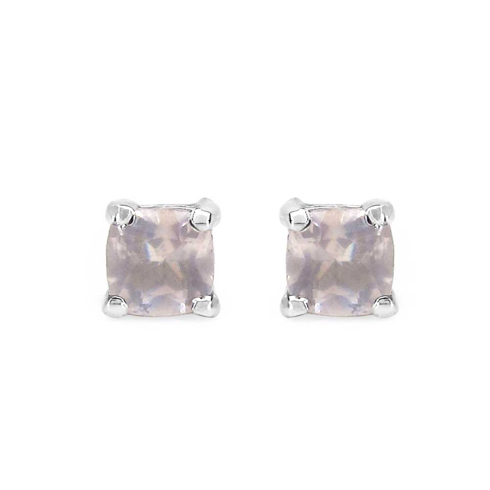 In diesen hübschen Ohrsteckern sind jeweils ein 4,00 mm großer, zartrosa Rosenquarz im Squareschliff