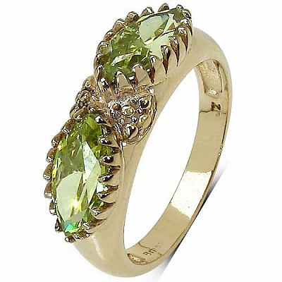 Eleganter Peridot Zirkonia-Ring 2,88 Karat - Messing Vergoldet mit Gelbgold 14 Karat
