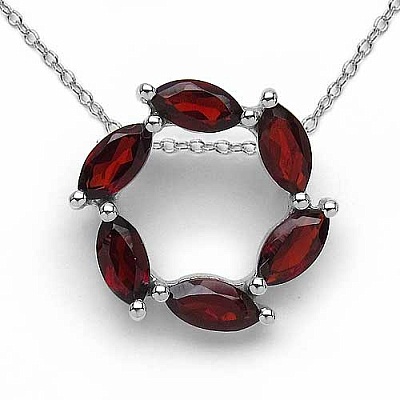 Collier/Halskette mit Granat - Anhänger- 1,80 Karat - 925 Sterling Silber-Rhodiniert